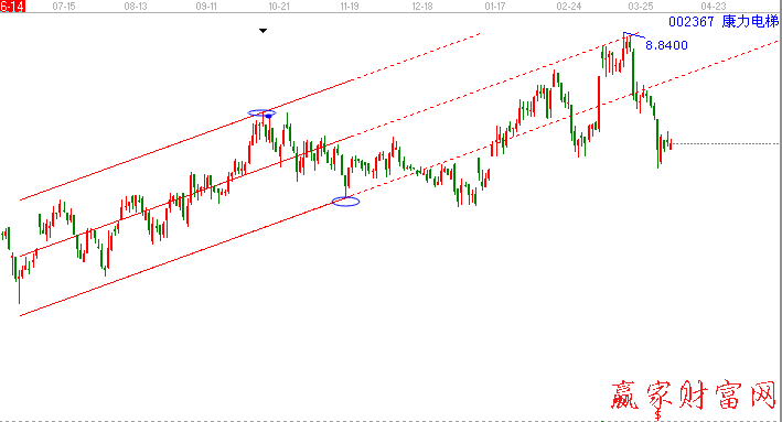 選擇2013年11月14日6.475為起點,2013年10月11日高點7.7為終點畫圖,如下圖: